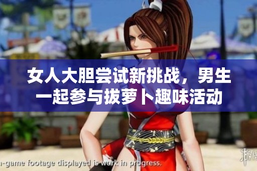 女人大胆尝试新挑战,男生一起参与拔萝卜趣味活动