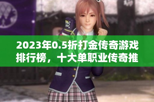 综上所述,2023年0.5折打金单职业传奇游戏排行榜上,有众多优秀的作品供玩家选择。无论您是老玩家还是新手,都能在这些游戏中找到属于自己的乐趣和成就感。在这个充满挑战与机遇的传奇世界中,快来加入我们,共同创造属于您的传奇冒险吧!